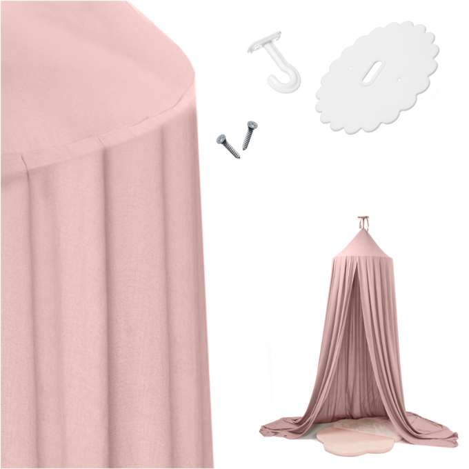 • Un baldachin suspendat unic. Va cuceri inimile copiilor și părinților deopotrivă. Atârnat deasupra pătuțului, va crea o atmosferă care facilitează adormirea. Funcționează bine și ca cort. Culoare: roz. Lungimea baldachinului: 290 cm. Diametru: 70 cm. Lungimea șnururilor: 44 cm.