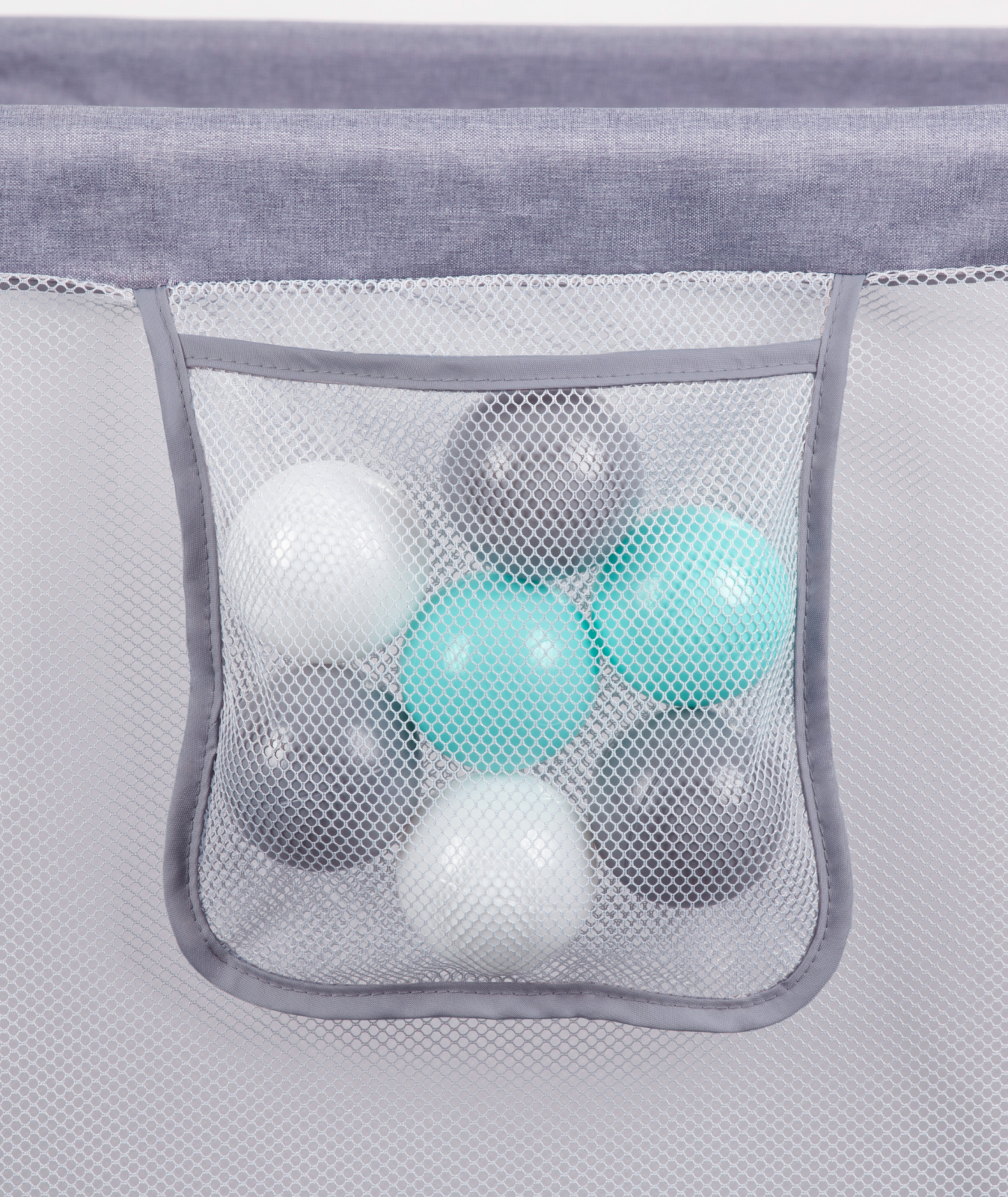 • Plasa transparentă și uniformă permite copilului să observe împrejurimile, asigură o ventilație adecvată și asigură că jucăriile plasate în țarc rămân înăuntru.