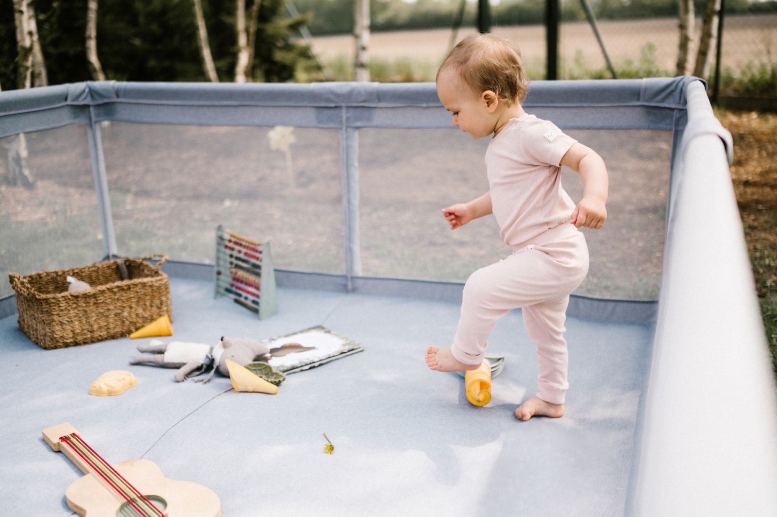 • Materialul rezistent la rupere și ușor de curățat al țarcului permite utilizarea acestuia în aer liber pe timpul verii. Petrecerea timpului împreună în grădină, garantând în același timp o joacă sigură pentru copil și puțină relaxare pentru părinți, va fi o adevărată plăcere.
