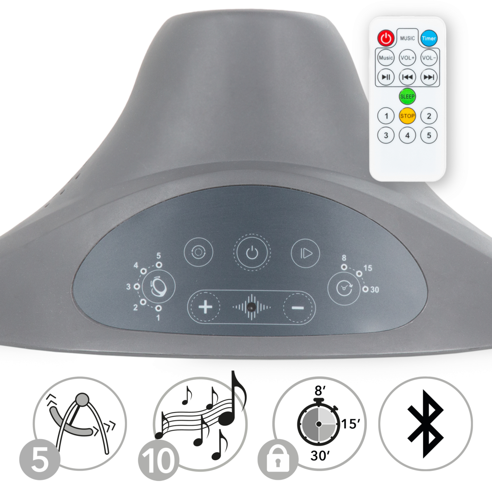 • Timp de legănare reglabil – 8, 15 sau 30 de minute