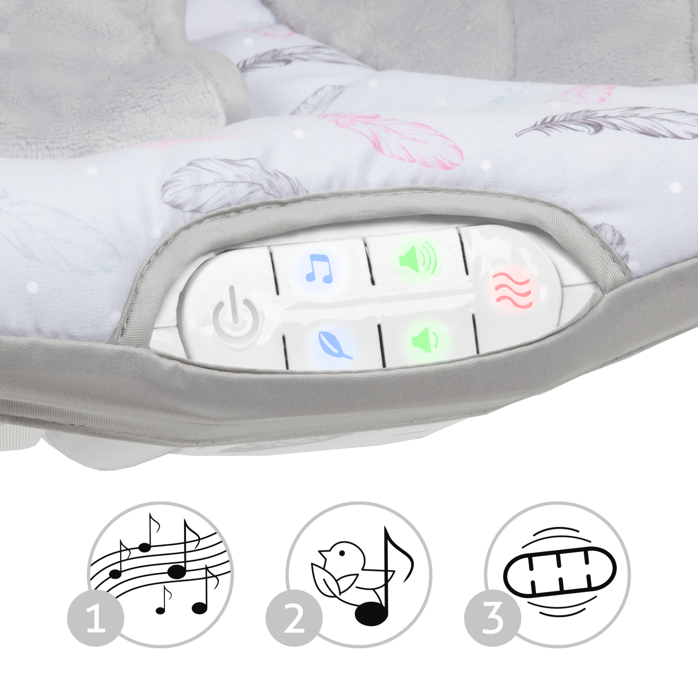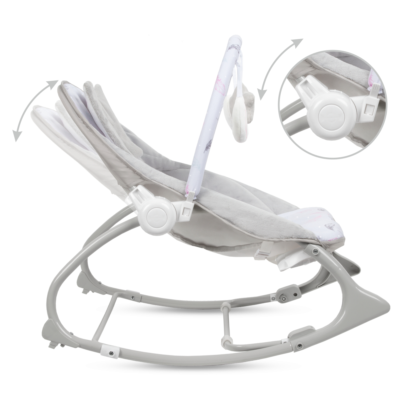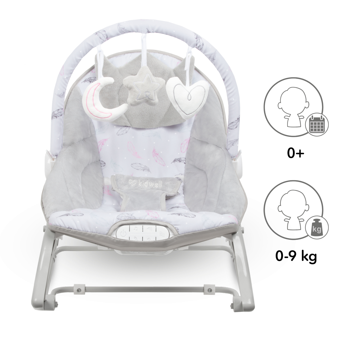 Construcția stabilă a cadrului permite utilizarea în siguranță a balansoarului până când copilul atinge o greutate de 9 kg.