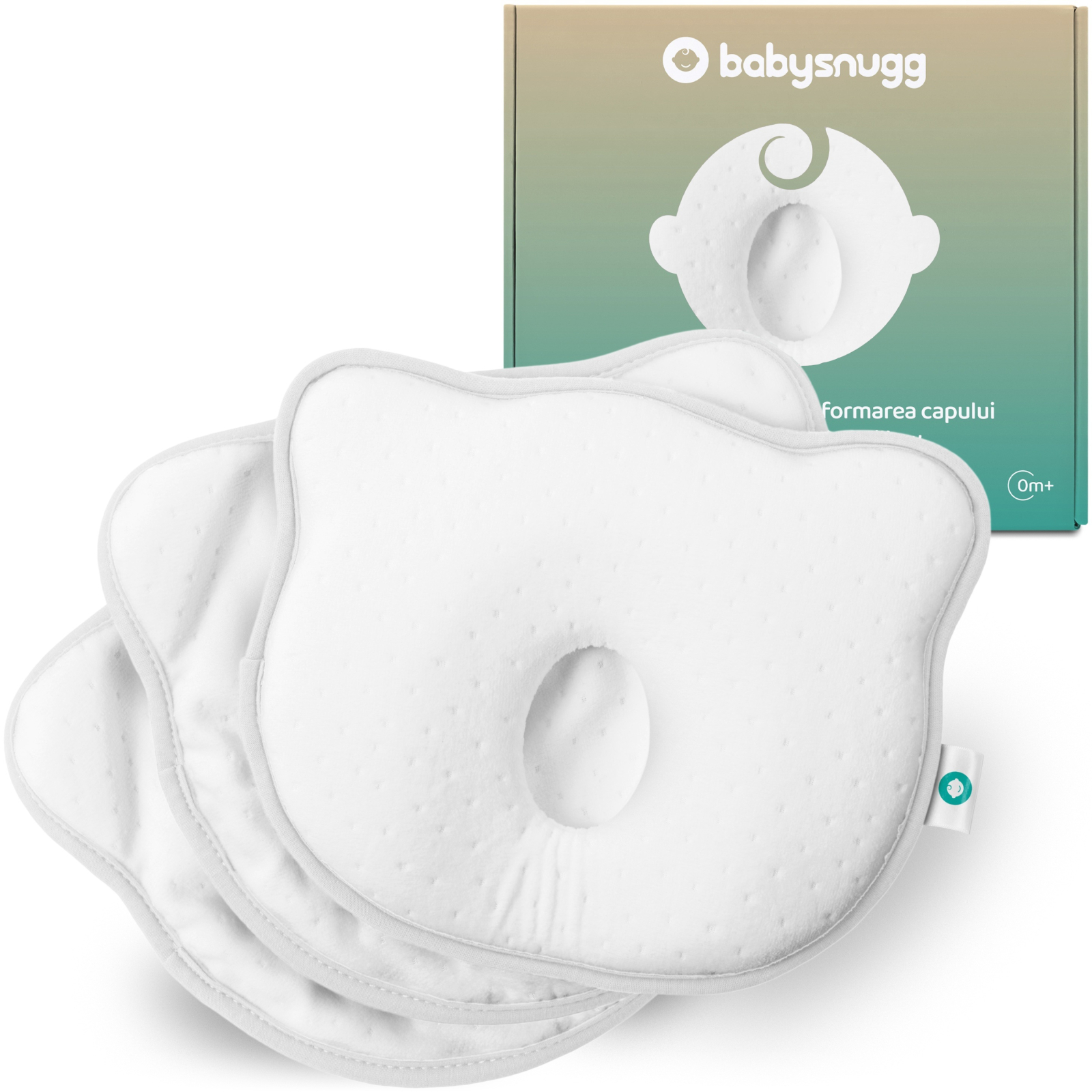 BabySnugg Perna bebelusi cu 2 huse contra plagiocefaliei pentru formarea capului, Alb